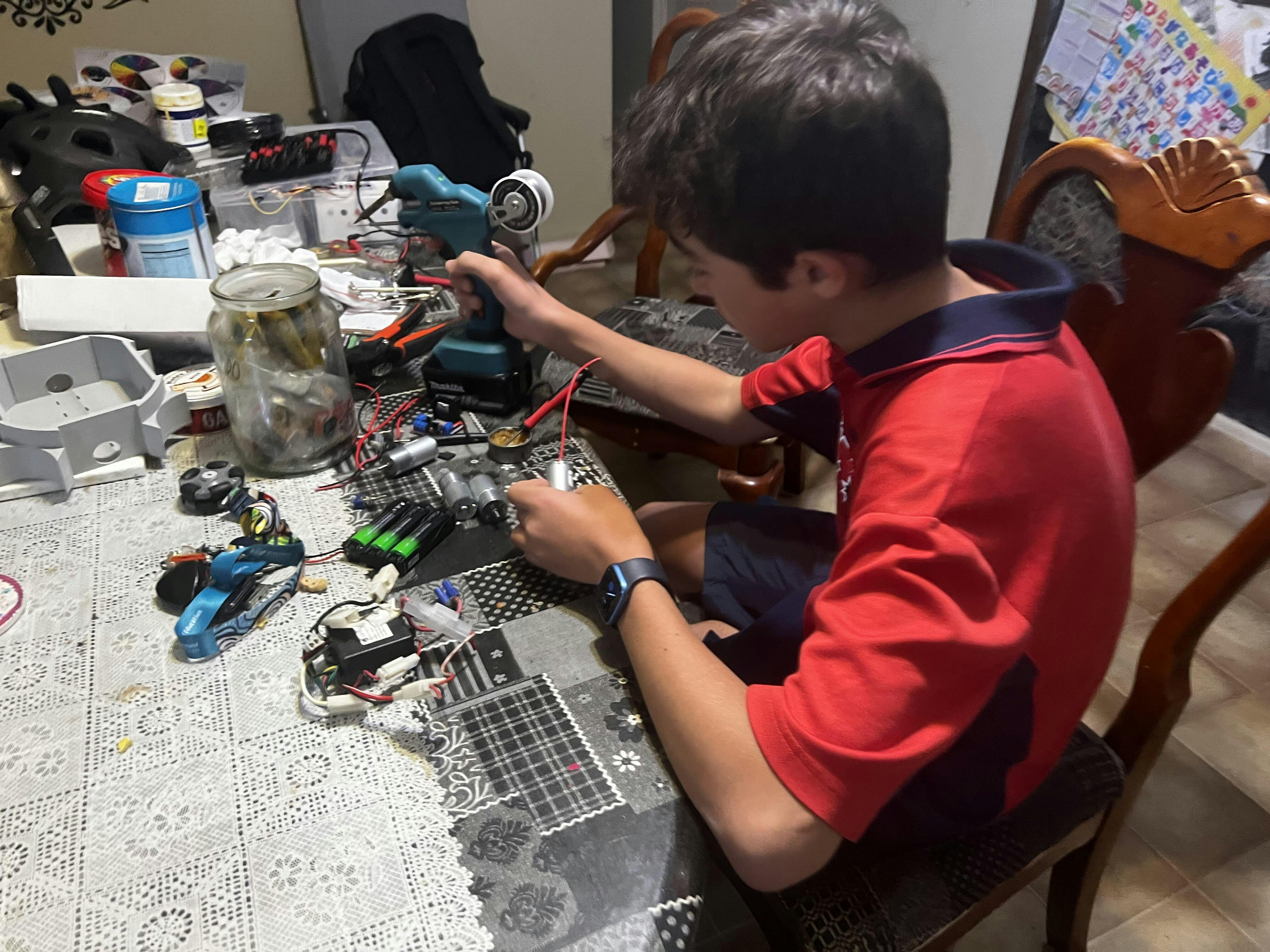 - Short USB cable for coding and power