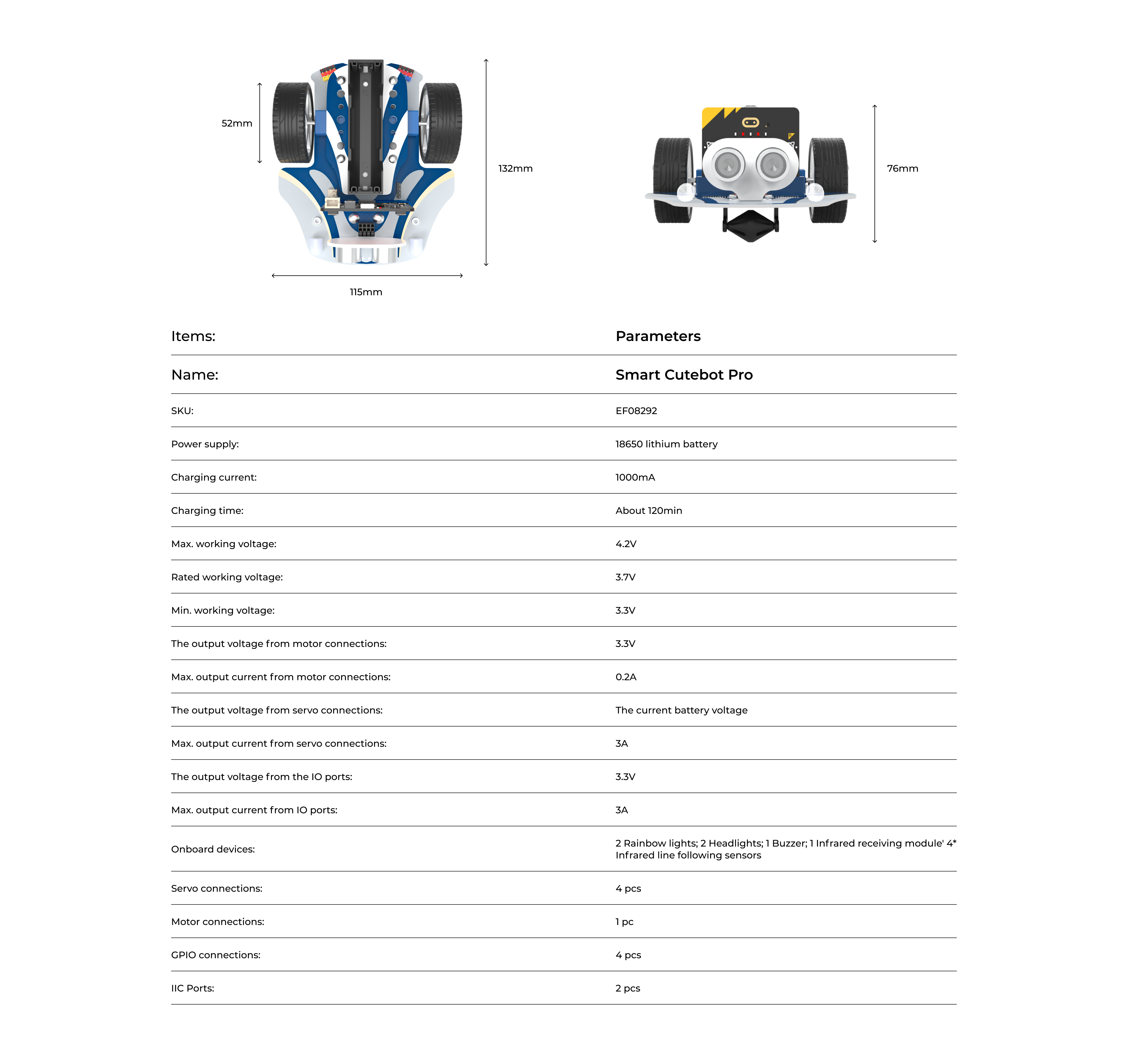ELECFREAKS micro:bit Smart Cutebot Pro Robot Car Kit is a programming robot for STEAM education, it equips with a 4-way infrared line-following sensor, an encoder motor, the LED rainbow light, an ultrasonic sensor, and other devices. With the encoder motors, the Cutebot Pro provides the flexibility to control the distance the cart travels and enables more precise control of the turning angle. The Cutebot Pro also offers a variety of expansion interfaces to allow for the expansion of additional hardware to stimulate your child's imagination and creativity.
