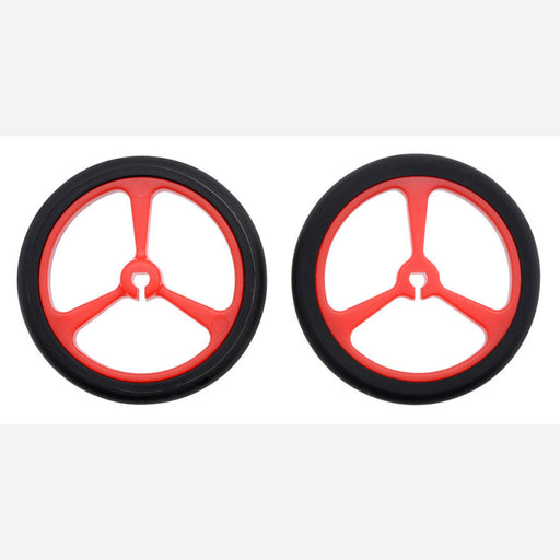 View full detailsThese red plastic wheels have silicone tires and measure 40 mm (1.57″) in diameter, and they press-fit onto the 3mm D shafts on many of our motors,...